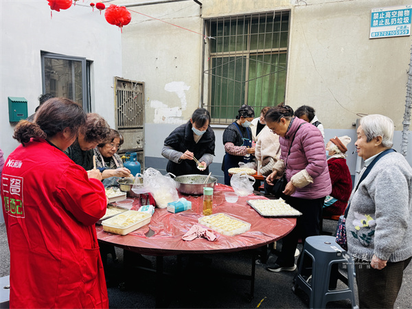 活動最暖環(huán)節(jié),當(dāng)屬跨小區(qū)的鄰里美食互動。工程營小區(qū)鄰里客廳熬制的排骨藕湯香氣撲鼻,九中宿舍小區(qū)鄰里客廳內(nèi),居民正合力包制團(tuán)圓餃子。兩小區(qū)居民齊聚一堂,熱湯配餃子,一場暖心家宴在嘮家常的溫馨氛圍中開席,詮釋了“左鄰右舍齊歡聚,共筑復(fù)興時(shí)光里”的活動主題。
