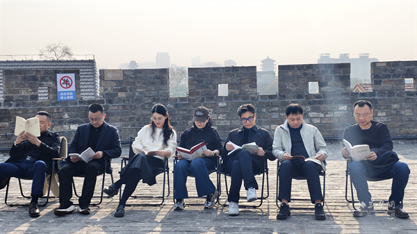 本次讀書(shū)會(huì)選址于武昌古城墻,場(chǎng)景設(shè)置頗具深意。一側(cè)是斑駁厚重的明代舊磚,承載著城市悠遠(yuǎn)記憶;另一側(cè)是企業(yè)家手中關(guān)于AI的前沿書(shū)卷,指向充滿可能的科技未來(lái)。厚重歷史與尖端技術(shù)在此交匯,恰呼應(yīng)了“智啟未來(lái) 城載古今”的活動(dòng)主題。