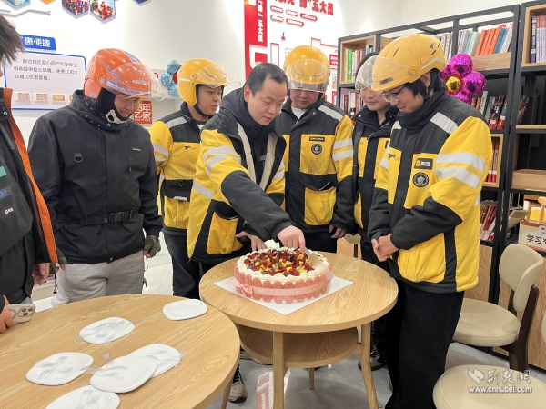 活動(dòng)現(xiàn)場洋溢著濃濃的溫情。驛站內(nèi),“生日快樂”的主題裝飾錯(cuò)落擺放,工作人員還精心準(zhǔn)備了定制生日蛋糕、可愛的生日帽,將小小的驛站裝點(diǎn)成充滿歡笑的“生日之家”。伴隨著熟悉的《生日快樂》旋律響起,外賣騎手、環(huán)衛(wèi)師傅們圍在一起,共同吹滅蠟燭、許下心愿,分享這份屬于他們的甜蜜與喜悅。