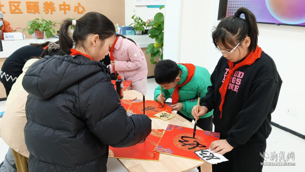 社區(qū)黨委充分發(fā)揮核心引領作用,積極統(tǒng)籌資源、搭建共建平臺?;顒蝇F(xiàn)場洋溢著溫馨祥和的節(jié)日氛圍。未來實驗小學的孩子們帶來精心編排的文藝節(jié)目,充滿朝氣的歌曲、舞蹈與詩朗誦為頤養(yǎng)中心注入了青春活力,贏得老人們陣陣掌聲。學生志愿者還與武昌區(qū)人大代表、未來實驗小學校長鄧徐念一起揮毫潑墨,書寫“?!弊峙c新春寄語,在筆墨間傳遞對長者最真摯的祝福。