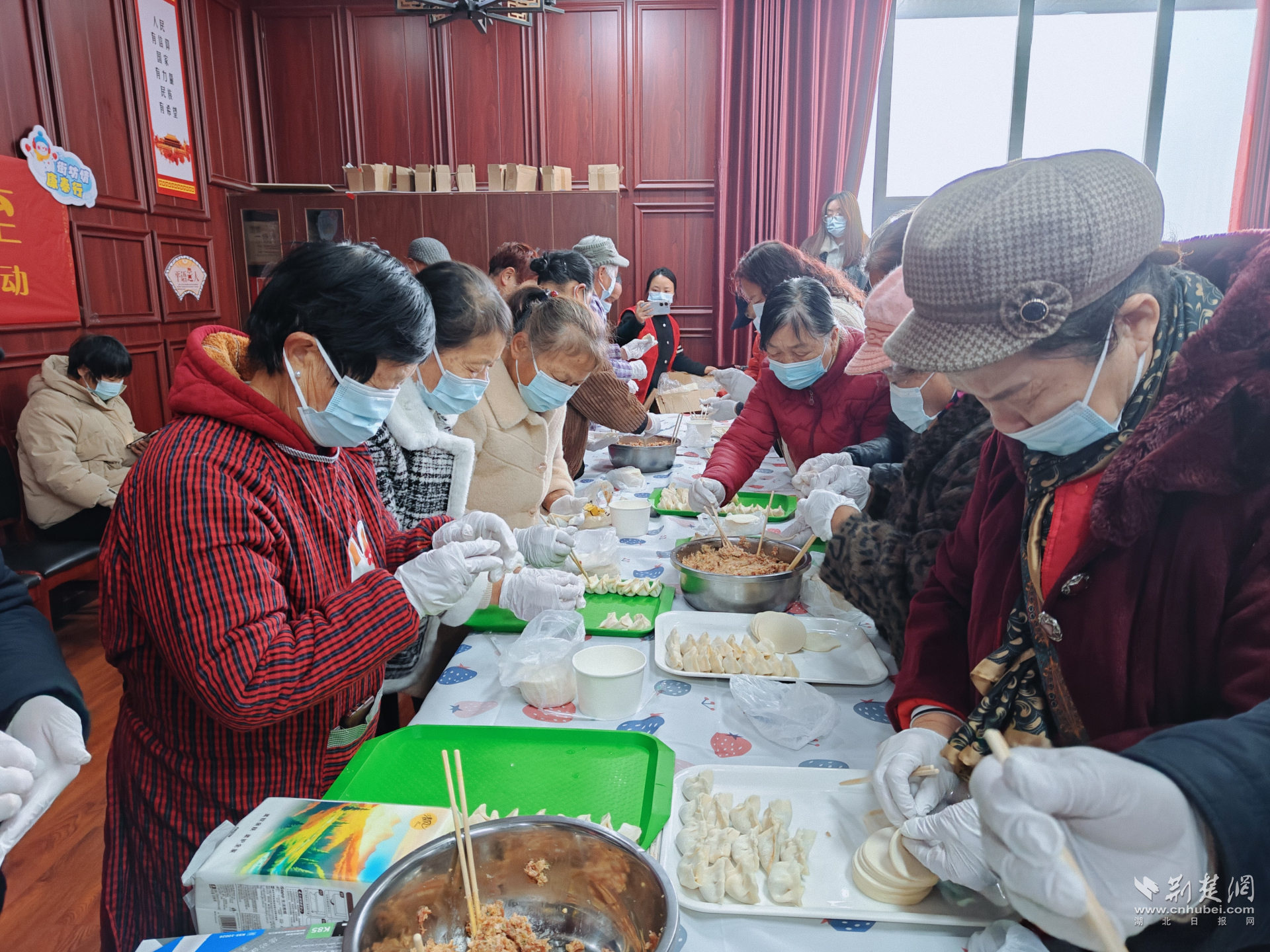 社區(qū)活動室內(nèi)一場“餃子接力賽”正火熱展開。通訊員供圖