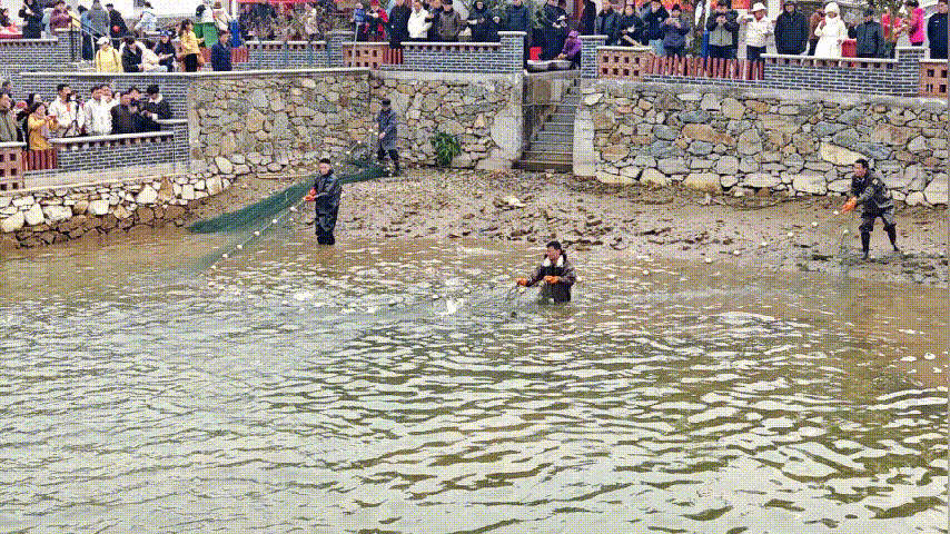 村民們拉動(dòng)手中的漁網(wǎng),平靜的水面頓時(shí)沸騰,魚兒打滾撒歡。圍觀人群爆發(fā)出陣陣歡呼,伴隨著攝影師們快門的咔嚓聲,這一鄉(xiāng)村傳統(tǒng)捕魚場景被定格在許多游客的手機(jī)屏幕中。