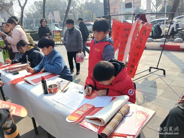 現(xiàn)場節(jié)日氛圍濃厚,文化氣息撲面而來。居民們不僅可以便捷選購年貨,還能免費參與多項文化體驗活動。書法老師帶領(lǐng)孩子們揮毫潑墨,一副副春聯(lián)和福字傳遞祝福;黃鶴書房設(shè)置的投壺游戲區(qū),讓市民在趣味中重溫傳統(tǒng)年俗;非遺手作課堂內(nèi),搖錢樹制作、剪窗花等技藝吸引眾人親手嘗試,近距離感受非遺魅力。市集匯聚30余家品牌商戶,商品涵蓋生鮮食品、休閑零食、健康禮品、文創(chuàng)產(chǎn)品等,充分滿足了居民“一站式”購齊年貨的多元需求,真正實現(xiàn)便民與惠民相統(tǒng)一。