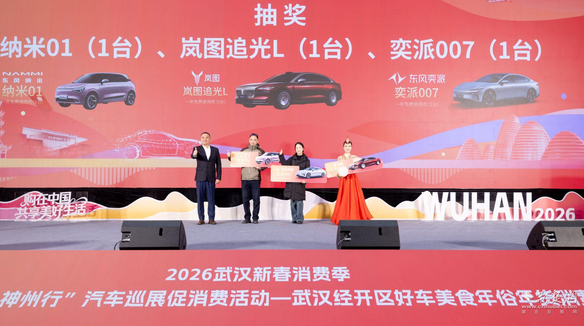 荊楚網(wǎng)(湖北日報(bào)網(wǎng))訊(記者陳泉 通訊員蔣秋雨、李巋)新春樂購,車谷有禮。1月30日,2026武漢新春消費(fèi)季暨“武漢造 神州行”汽車巡展促消費(fèi)活動—武漢經(jīng)開區(qū)好車美食年俗年貨消費(fèi)季啟動儀式在武漢杉杉奧特萊斯啟幕。