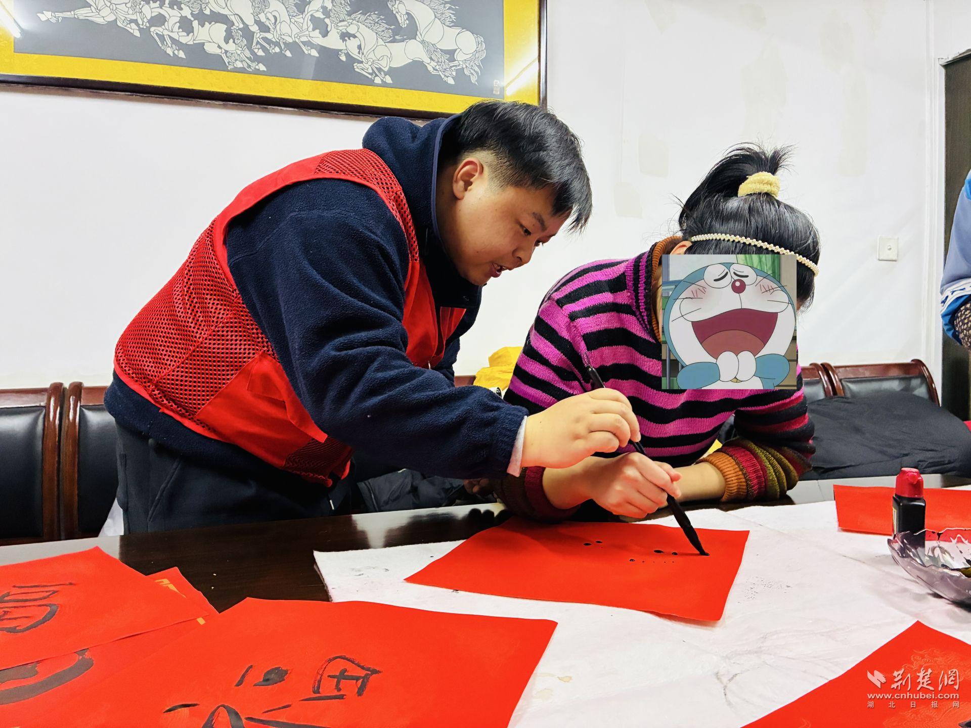 活動現(xiàn)場還設(shè)置了春聯(lián)書寫互動區(qū)。書法老師從握筆姿勢、用筆力度講起,耐心示范基礎(chǔ)筆法,并根據(jù)每個(gè)人的情況進(jìn)行指導(dǎo)。筆墨鋪展間,一副副春聯(lián)逐漸成形,內(nèi)容樸實(shí)真切,寄托著對新一年的期望。