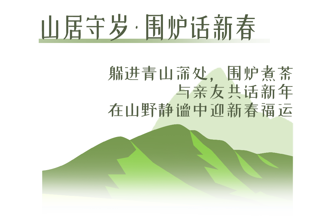 新春期間,開(kāi)闊草坪上搭建了專(zhuān)屬?lài)鸂t區(qū),配上年貨小食、暖茶甜湯,三五好友圍坐取暖,閑話(huà)家常;清晨推窗可見(jiàn)薄霧繚繞的山林,午后可沿景區(qū)步道徒步尋梅,傍晚在庭院點(diǎn)燃篝火,看星火與星光交映,沉浸式感受山野新春的靜謐與溫暖。