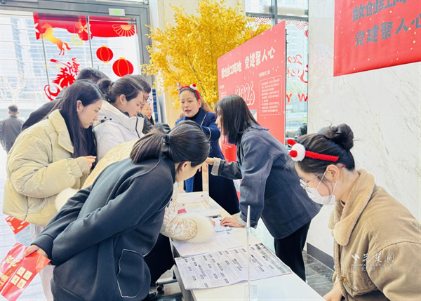 此外,現(xiàn)場還設有“黨建宣傳與入黨咨詢站”,通過展板系統(tǒng)展示樓宇黨建工作成效、支部風采與陣地建設情況,工作人員為職工提供入黨政策講解和成長指導,吸引多位職工駐足咨詢并登記入黨意向,推動組織關懷切實延伸到樓宇一線。