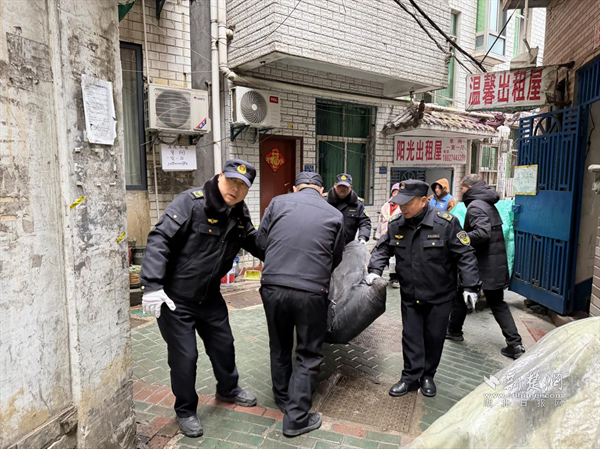 執(zhí)法隊(duì)員協(xié)助社區(qū)清理居民生活雜物。 通訊員供圖