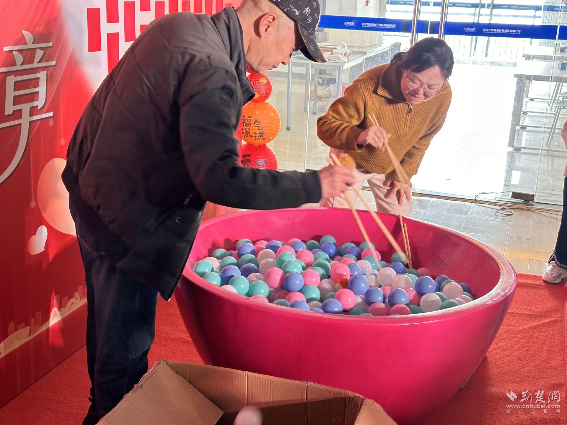 自由游戲區(qū)同樣人氣十足。滾動“湯圓”的祝福賽道前,員工認(rèn)真調(diào)整力度,期待停在“招商企業(yè)100家!”“沖進(jìn)國內(nèi)500強(qiáng)企業(yè)”等激勵區(qū)域;“福氣粘粘到”桌前,十秒鐘的挑戰(zhàn)讓人屏氣凝神;燈謎區(qū)前,有人皺眉思索,有人靈光一閃,最終猜出謎底贏得掌聲。