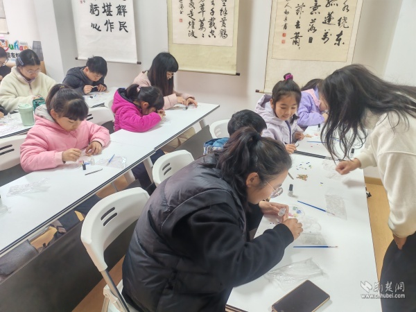隨后,“閱讀媽媽”將話題自然引向非遺文化:“你們知道嗎?黃鶴樓不僅出現(xiàn)在詩(shī)詞里,還藏在楚繡的針腳中,藏在剪紙的紋樣里……”她通過(guò)展示精美的非遺作品,解讀楚繡中黃鶴紋樣的寓意,講述剪紙藝術(shù)如何再現(xiàn)黃鶴樓的雄姿。在她的娓娓道來(lái)中,黃鶴樓與荊楚非遺的淵源徐徐展開(kāi),孩子們聽(tīng)得入神,眼中閃爍著好奇與向往。