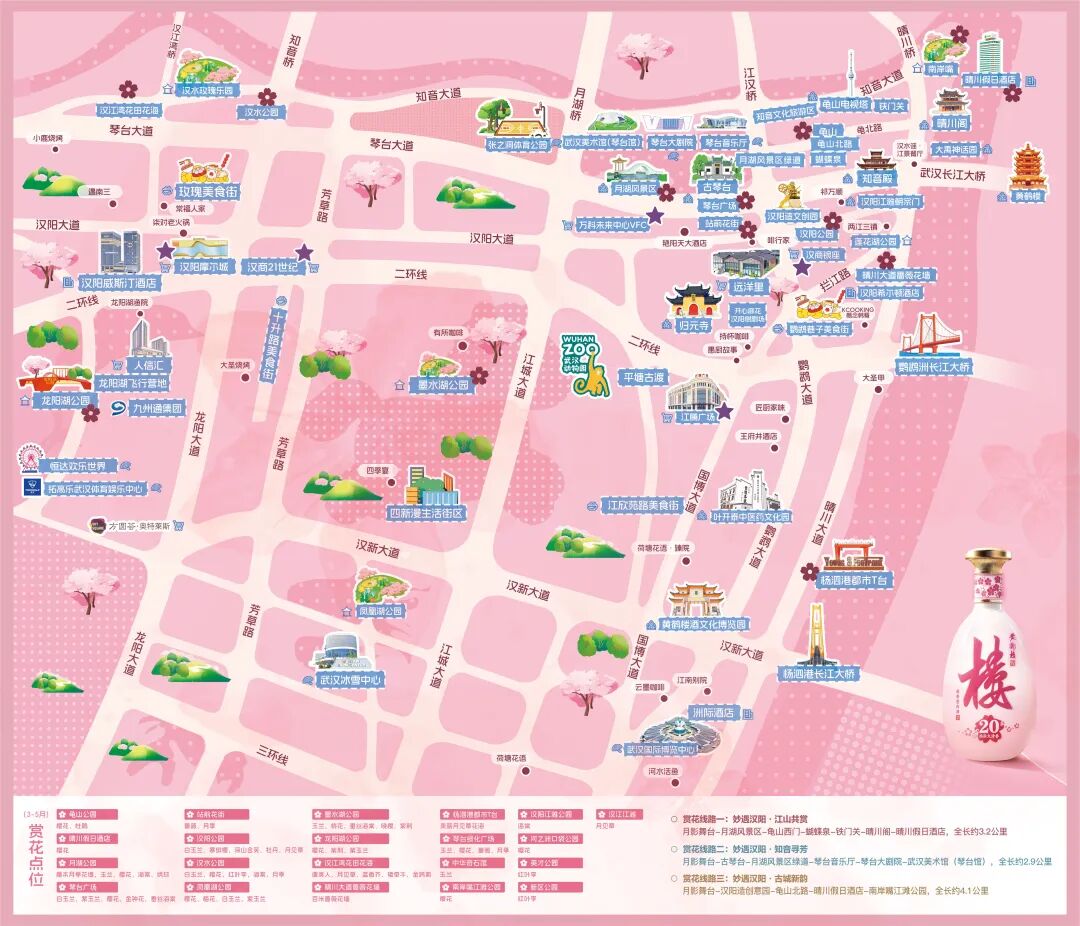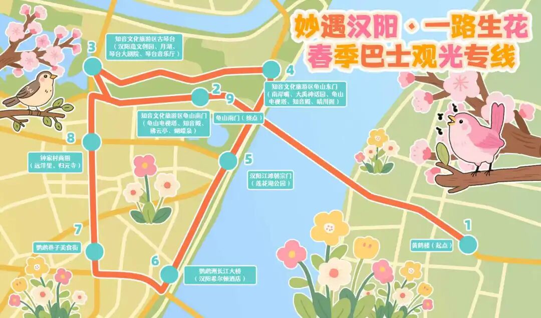 △“妙遇漢陽(yáng)·一路生花”春季巴士觀光專線線路圖。