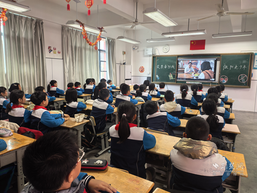 同學(xué)們觀看科普課件。 通訊員供圖