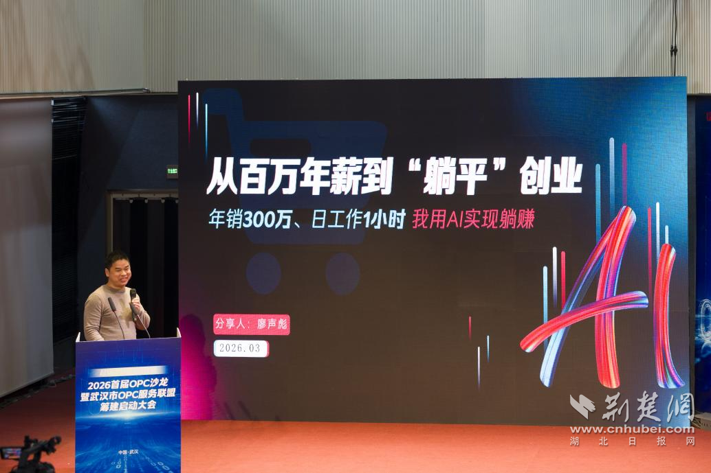 活動(dòng)現(xiàn)場(chǎng),創(chuàng)業(yè)者分享環(huán)節(jié)成為一大亮點(diǎn)。36歲的創(chuàng)業(yè)者廖聲彪帶著自己的創(chuàng)業(yè)故事登臺(tái),言語(yǔ)樸實(shí)卻充滿(mǎn)力量。他向現(xiàn)場(chǎng)觀眾分享了自己的創(chuàng)業(yè)歷程:從擁有百萬(wàn)年薪的職場(chǎng)人,毅然轉(zhuǎn)型選擇“躺平式”創(chuàng)業(yè),如今他的項(xiàng)目年銷(xiāo)售額已達(dá)300萬(wàn),每天僅需工作1小時(shí),憑借AI技術(shù)成功實(shí)現(xiàn)了“躺賺”的創(chuàng)業(yè)愿景。此外,他還現(xiàn)場(chǎng)表示,下半年將從杭州回到武漢,開(kāi)啟一人公司的創(chuàng)業(yè)模式,扎根江城這片科創(chuàng)沃土,為武漢OPC產(chǎn)業(yè)發(fā)展貢獻(xiàn)力量。