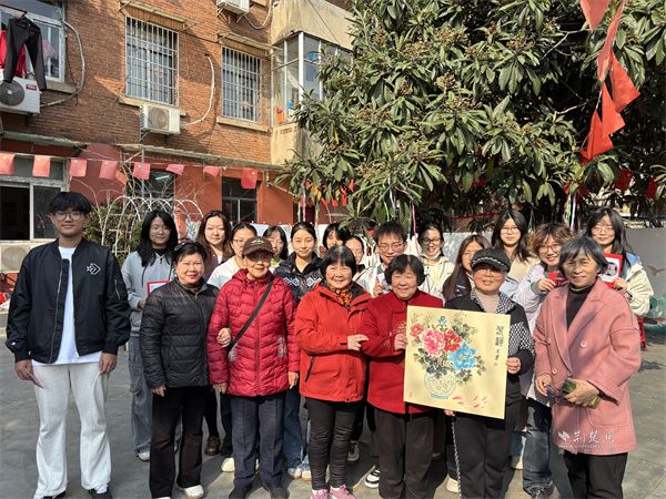在老師的指導(dǎo)下,老人們手持剪刀,專(zhuān)注地裁剪出形態(tài)各異的花鳥(niǎo)圖案。青年學(xué)生執(zhí)筆作畫(huà),將春日景象描繪于宣紙之上?!昂芫脹](méi)有這樣靜下心來(lái)畫(huà)畫(huà)了,和年輕人一起創(chuàng)作,感覺(jué)自己都年輕了?!眳⑴c活動(dòng)的社區(qū)老人李阿姨笑著說(shuō)道。