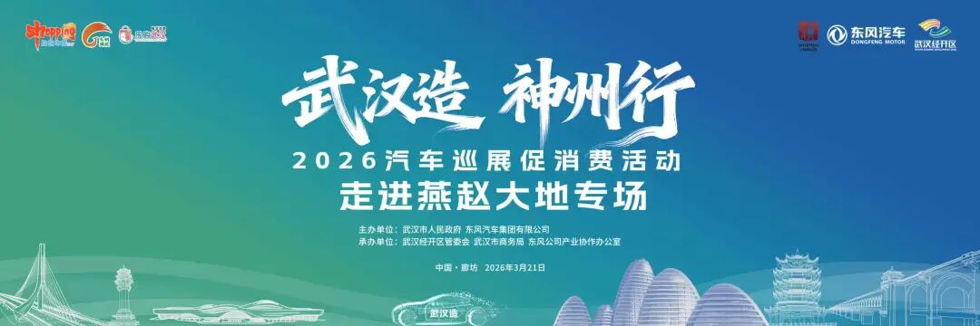 風(fēng)起車谷,智惠燕趙。3月21日,“武漢造 神州行”2026汽車巡展促消費(fèi)活動·走進(jìn)燕趙大地專場將在河北省廊坊市舉行。這也是“武漢造”汽車巡展促消費(fèi)活動首次走進(jìn)燕趙大地。