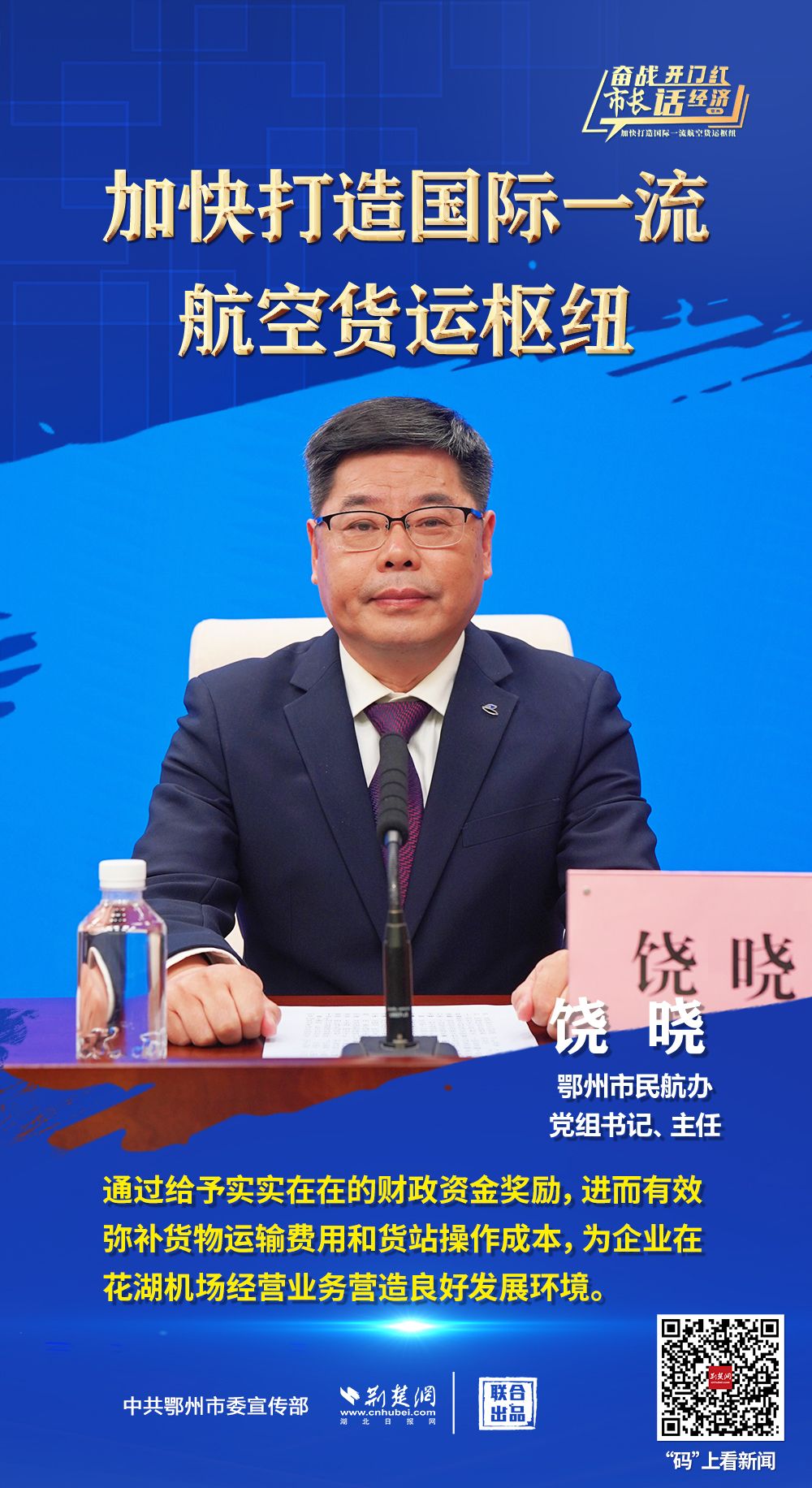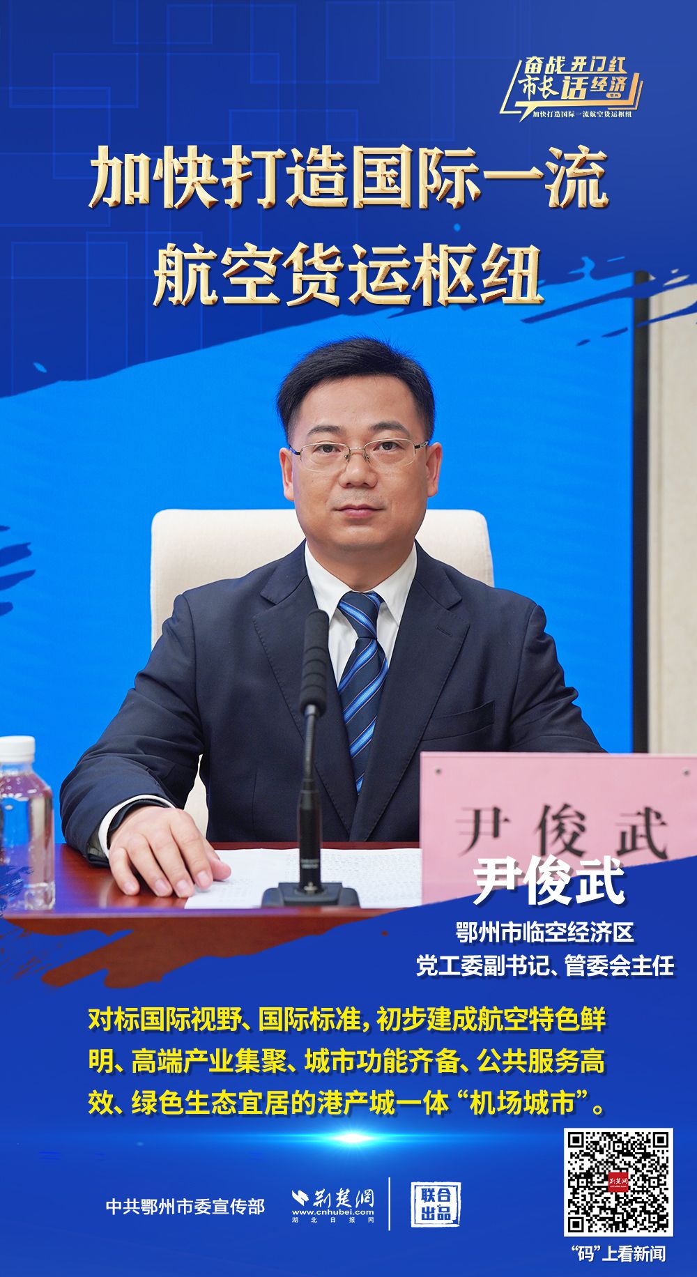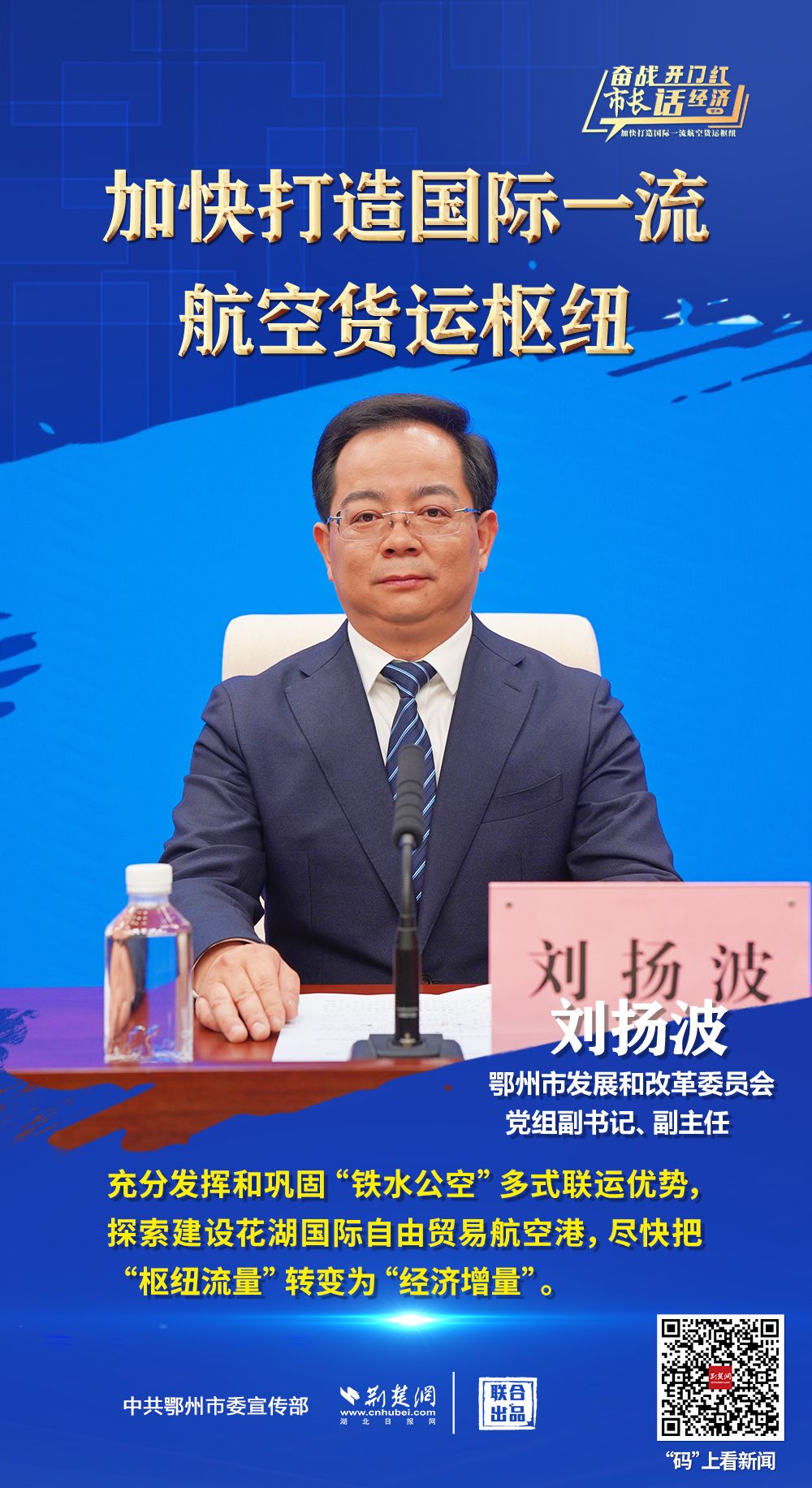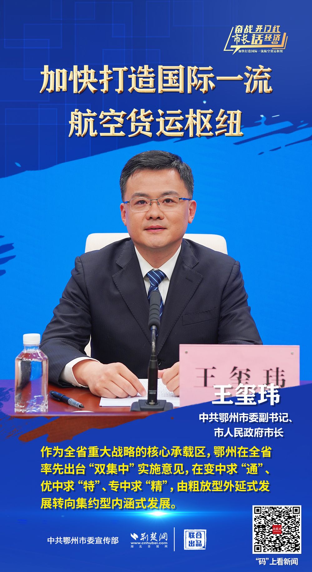 3月26日上午,省政府新聞辦舉行“奮戰(zhàn)開門紅 市長話經(jīng)濟(jì)”系列新聞發(fā)布會第十三場,介紹“鄂州花湖機(jī)場加快打造國際一流航空貨運(yùn)樞紐”相關(guān)情況,并回答主流媒體提問。