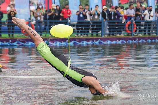與常規(guī)鐵人三項賽不同,此次比賽場地設在鄉(xiāng)村,游泳賽段設在水域寬廣的白蓮河水庫,自行車賽段圍繞多彩旅游路騎行,跑步賽段沿途皆是風景,參賽者們經(jīng)過有著獨特人文風情的綠楊鄉(xiāng)、白蓮河和三角山旅游區(qū),在國家級森林公園里揮灑汗水,感受城鄉(xiāng)新區(qū)的獨特魅力。所有全程組的選手都在此接受游泳1.5公里、騎行40公里、跑步10公里的挑戰(zhàn)。