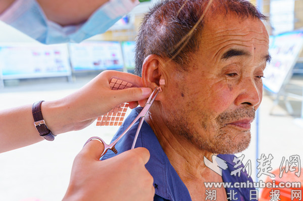 義診現(xiàn)場,除了心電圖、血糖、血壓等常規(guī)檢查外,還首次增加了肺功能檢查、貼三伏貼、針灸、拔罐、刮痧等醫(yī)療項目,323攻堅行動宣傳冊也發(fā)到每位群眾的手中。