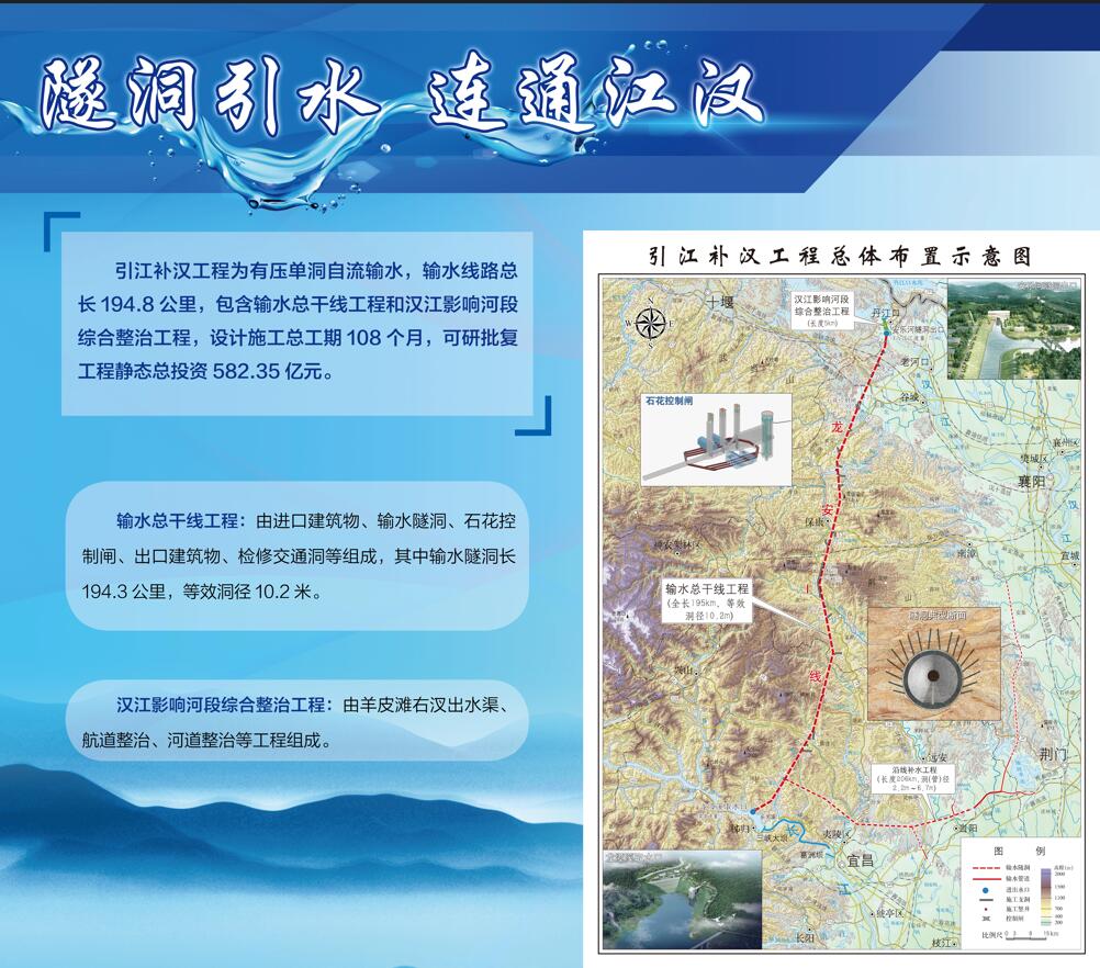 據(jù)介紹,引江補漢工程是南水北調后續(xù)工程首個開工項目,是加快構建國家水網主骨架和大動脈的標志性工程。工程靜態(tài)總投資582.35億元,設計施工總工期108個月。