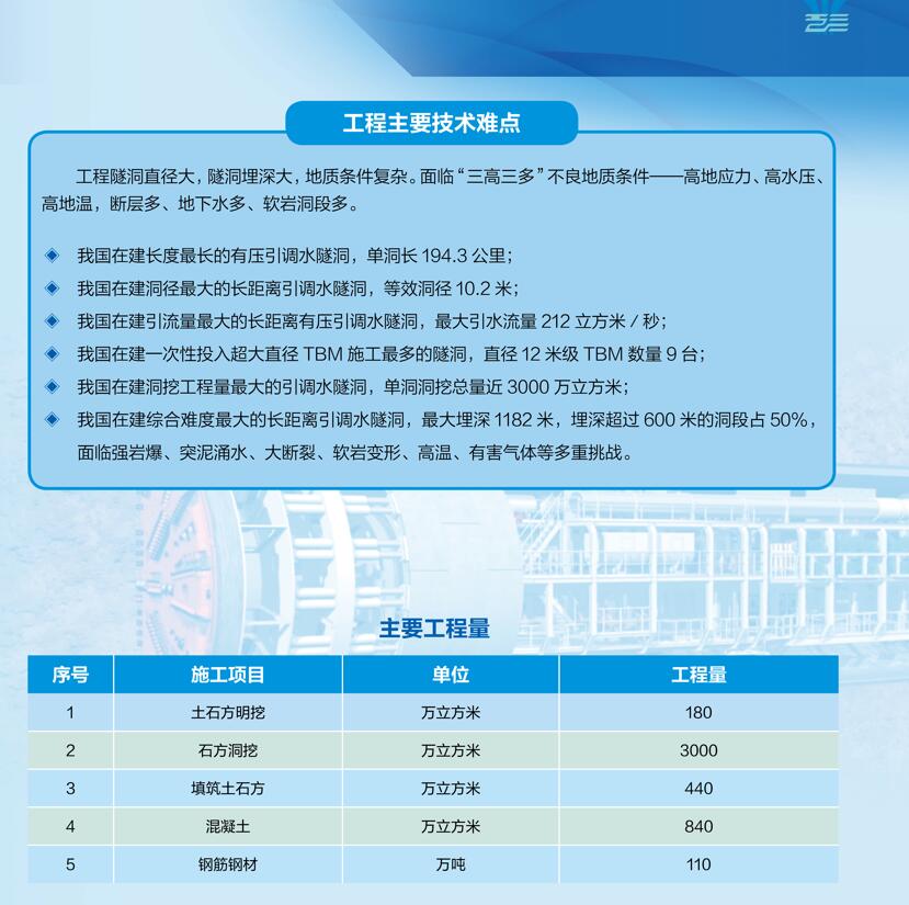 據(jù)介紹,工程輸水總干線采用有壓單洞自流輸水,沿線地質條件復雜,面臨強巖爆、突泥涌水、大斷裂、軟巖變形、高溫、有毒氣體等多重挑戰(zhàn),施工難度極大。工程設計與施工將再一次提升我國水利建設科技能力。