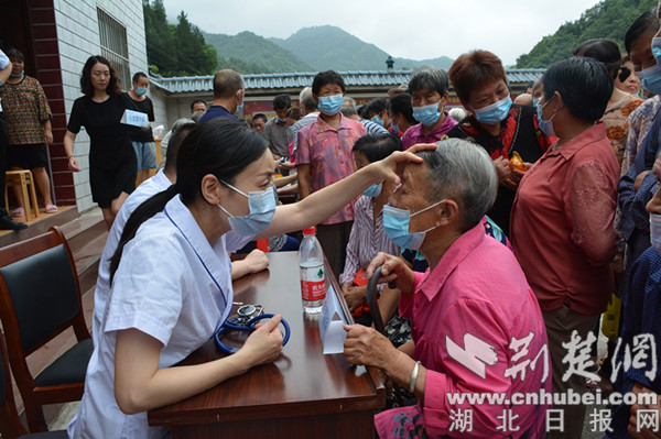 楊柳村位于位于鄖陽區(qū)西南部的大山深處,距離十堰市區(qū)50余公里,是十堰市稅務(wù)局鄉(xiāng)村振興聯(lián)系點(diǎn),村里以老年人居多。聽說市人民醫(yī)院的專家要來義診,村民們?cè)缭缇蛠淼酱逦瘯?huì),在市稅務(wù)局駐村工作隊(duì)的精心組織下,佩戴口罩排起了長(zhǎng)隊(duì)。簡(jiǎn)短的介紹儀式結(jié)束后,來自市人民醫(yī)院心血管內(nèi)科、兒科、消化內(nèi)科、睡眠醫(yī)學(xué)科、內(nèi)分泌科等專業(yè)學(xué)科的8位專家便立即開始為村民診療。