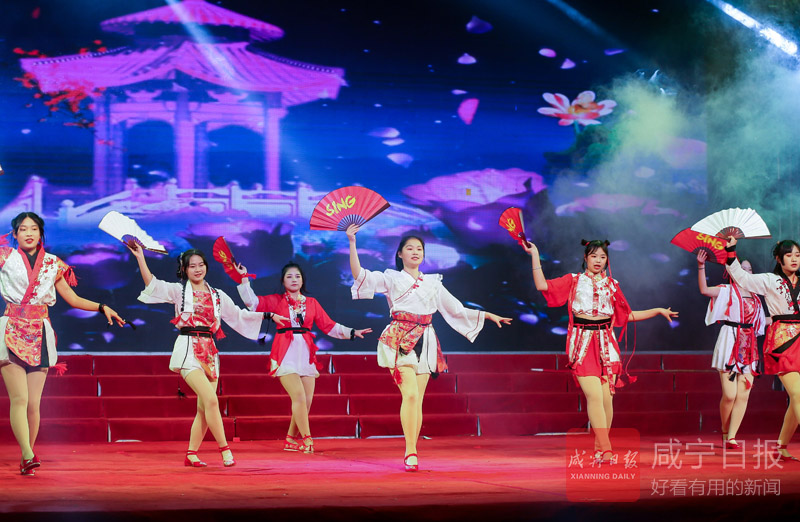 元月3日晚,咸寧高中舉行主題為“永遠跟黨走,共筑中國夢”2019年新年晚會,歌舞、小品、詩朗誦等17個節(jié)目均由該校師生自編自演,展示了咸高對美好未來的向往和積極進取的精神面貌。圖為咸高學生正在表演舞蹈《寄明月》。