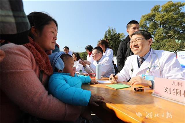 當天下午,同濟醫(yī)院兒科、小兒外科、眼科、耳鼻咽喉科、心臟大血管外科等20位專家團隊來到咸寧市咸安區(qū)高橋鎮(zhèn)文化廣場為當?shù)厣倌陜和M行義診,醫(yī)務人員為孩子們進行了兒童常見疾病篩查,細致地為每一個孩子做好記錄,并向家長講解疾病預防和治療常識,讓孩子們健康平安過大年。
