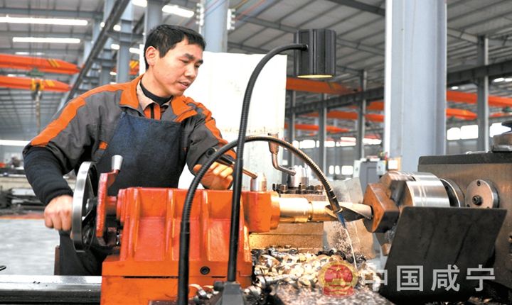 11日,通山縣經(jīng)濟(jì)開(kāi)發(fā)區(qū)工業(yè)園,來(lái)自南林橋鎮(zhèn)的村民徐立光在星光玉龍機(jī)械(湖北)有限公司房?jī)?nèi)進(jìn)行車(chē)床外加工。