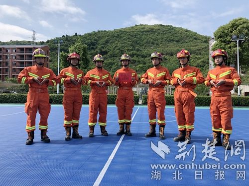 圖為消防指戰(zhàn)員手勢(shì)比心祝福母親節(jié)。 蔡林先攝