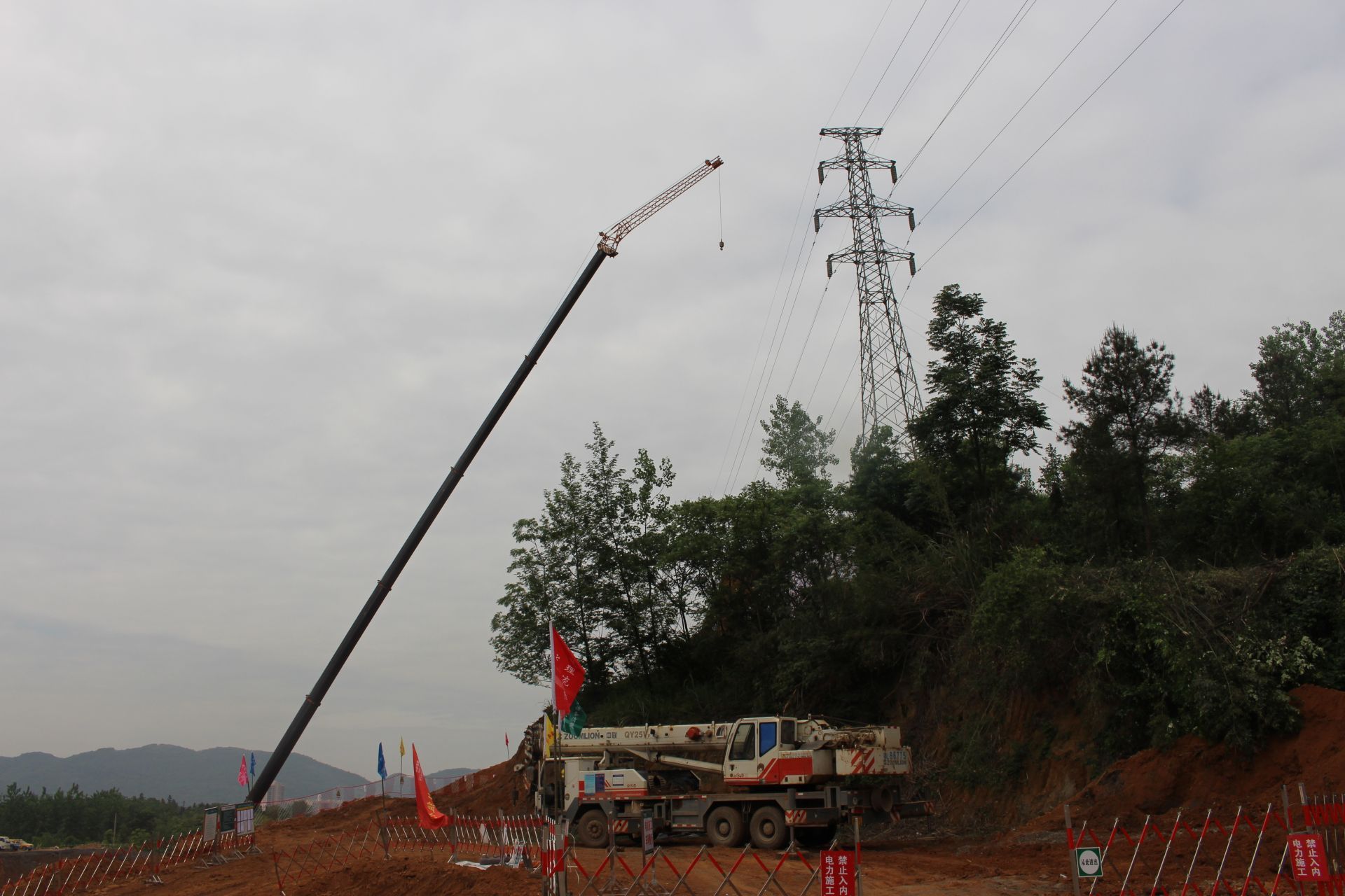5月8日早上6點(diǎn),搶修人員現(xiàn)場(chǎng)通過(guò)吊車將桿塔錨固,對(duì)塔上導(dǎo)線進(jìn)行拆除等系列措施進(jìn)行搶修。看似簡(jiǎn)單的工作,在30米的高空操作費(fèi)時(shí)費(fèi)力,雖然天氣微涼,但是電力搶修人員的汗水早已浸透衣衫。
