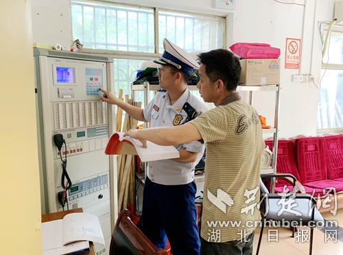 圖為消防監(jiān)督員檢查場(chǎng)所消防設(shè)施現(xiàn)場(chǎng)。 阮曉芬攝