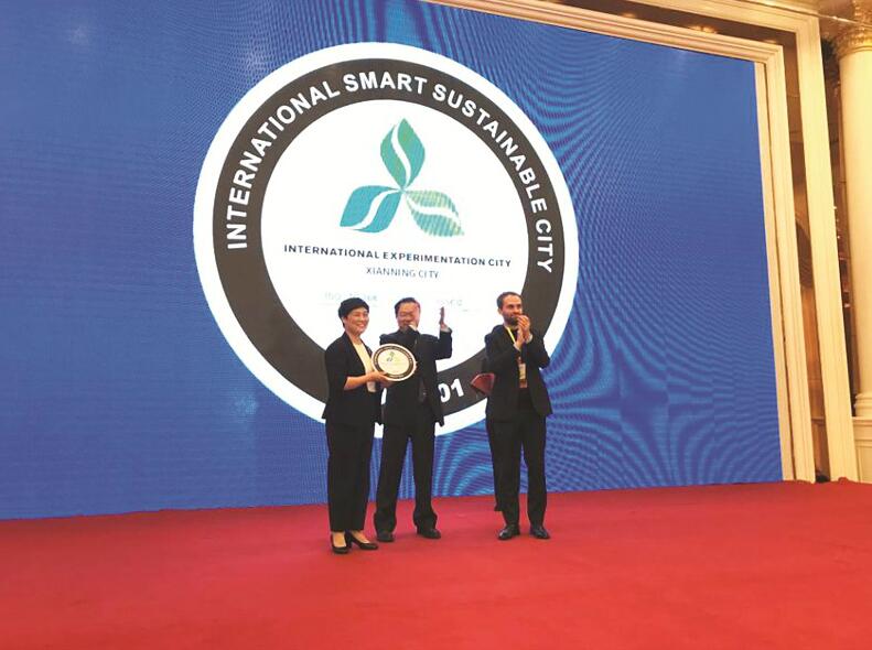 圖為:咸寧被授予“可持續(xù)發(fā)展國(guó)際標(biāo)準(zhǔn)試點(diǎn)城市”。