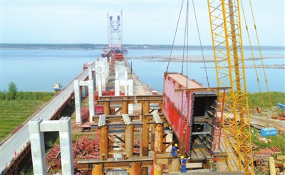據(jù)介紹,赤壁長江公路大橋南岸灘橋、引橋、左湖大橋、清江寨大橋墩身及蓋梁進展順利,即將完工。