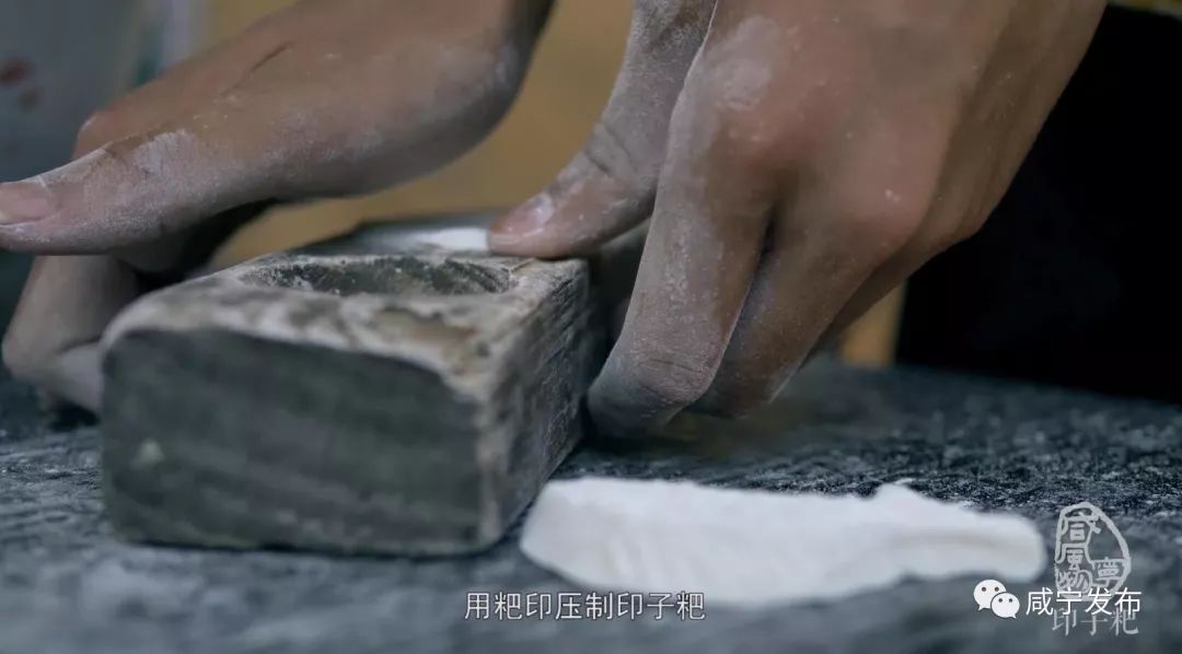 印子粑是咸寧鄉(xiāng)村廣為流傳的民俗食品,一般在春節(jié)和孩子一歲生日時(shí)制作。粑印用木制,每個(gè)粑印有1-3個(gè)空模,形狀一般只有小茶杯口大。粑印里刻有反向的如魚以及花、草等各種動(dòng)植物圖案,制作出來的粑邊緣有一圈花紋,形象生動(dòng),栩栩如生。堆成的粑山,晶瑩透亮,造型美觀,堪稱優(yōu)秀的民間藝術(shù)品。