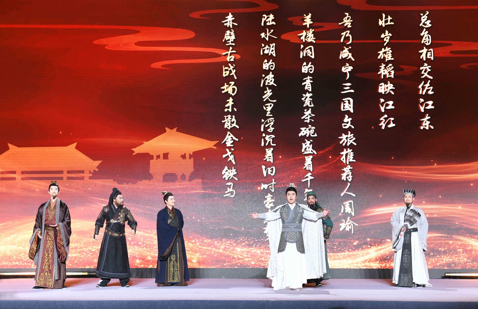 “三國六城,今日結盟!與君共同開啟,荊楚三國文化之旅。”啟動式上,身著古裝的文旅推薦官,化身三國英雄劉備、關羽、張飛、諸葛亮、孫權、周瑜等,穿越歷史時空,分別代表武漢、荊州、宜昌、襄陽、鄂州、咸寧對外推介各地三國旅游景點和線路。
