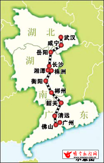 據(jù)了解,為滿足旅客的出行需求,沿線將新建21個火車站。武廣客運專線建成后,高速列車最高運行速度可達(dá)每小時350公里,從咸寧乘火車到廣州僅需3個小時,較目前縮短7個多小時。