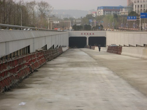 水果湖隧道是二環(huán)線工程的重要節(jié)點工程,隧道南起湖北省審計廳正門,沿線經(jīng)過中科院水生物研究所、東湖南路、東湖、東湖賓館,北至東湖路湖北省消費協(xié)會,全長1735米,隧道內(nèi)為雙向四車道,采用鋼板樁圍堰明挖法施工。隧道工程內(nèi)容包括隧道主體結(jié)構(gòu)工程以及機電設備安裝、隧道裝飾裝修、消防、監(jiān)控、交通、照明等附屬工程。工程總投資5.37億元。