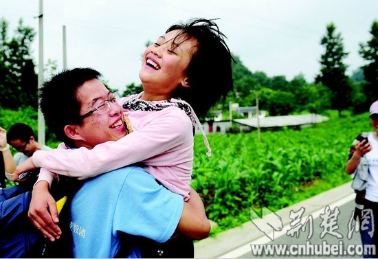“波波!”往屆支教生陳立、張春麗、嚴文高、葛俊,興奮地抱住前來迎接的胡益波。貴州的山山水水,多少次夢中縈繞,今天,他們終于又回來了。