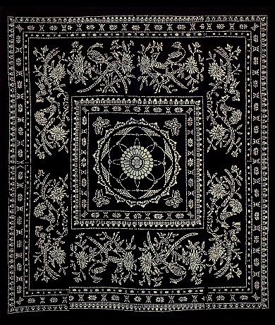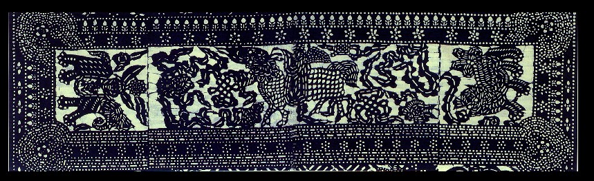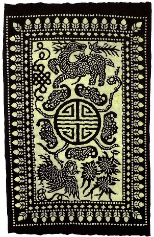 藍印花布遍及湖北全省,尤以天門藍印花布最負盛名。其特點:1、藍與白的選擇,藍白兩色并非吉祥色,然而經(jīng)過藝人們的巧妙的藝術(shù)處理,使人感到清新明快;2、虛與實的結(jié)合:以點組成線,以線組成面,若合若離,似為一體,實又分離。
