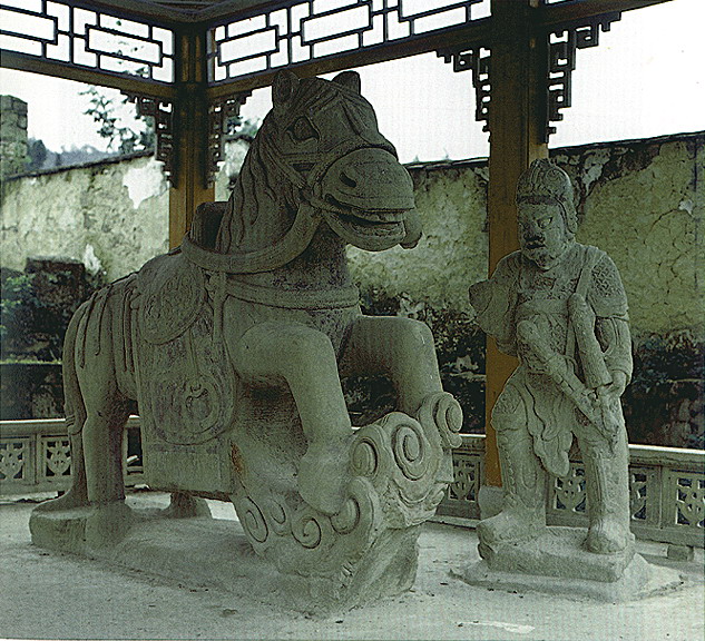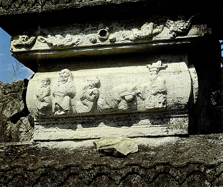 石雕 湖北省北有秦嶺東沿的武當(dāng)山、大別山、桐柏山,西接云貴高原,東南為幕阜山脈環(huán)繞,中部是寬闊的江漢平原。山區(qū)產(chǎn)石料,為石雕提供了豐富的用材;平原燒泥土制磚瓦,鐫以圖案美化建筑。民間石雕、磚雕分布,與地形大體一致。?凳耦}材廣泛,大致分為日常生活、倫理教化、神話傳說(shuō)、戲文故事、花鳥蟲魚、書文楹聯(lián)六類。